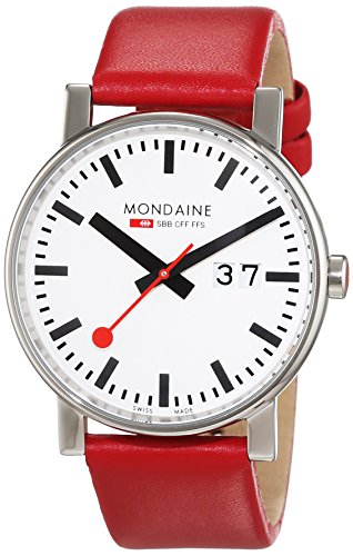 Montre Mondaine Evo 40 mm Rouge - Montre Mondaine Evo 40 mm grande date. ... Rouge; Matière du bracelet : Cuir; ... Analogique (Aiguilles) Mécanisme : Quartz ...