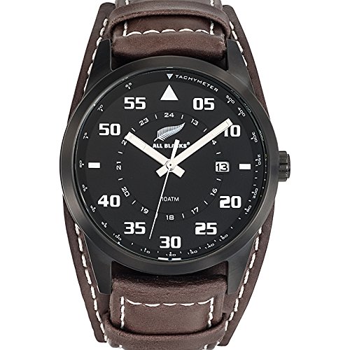 All Blacks Montre Homme 680160 ... Montre analogique (3 aiguilles), boitier rond en acier, cadran noir, bracelet de force en cuir marron, dateur, ...