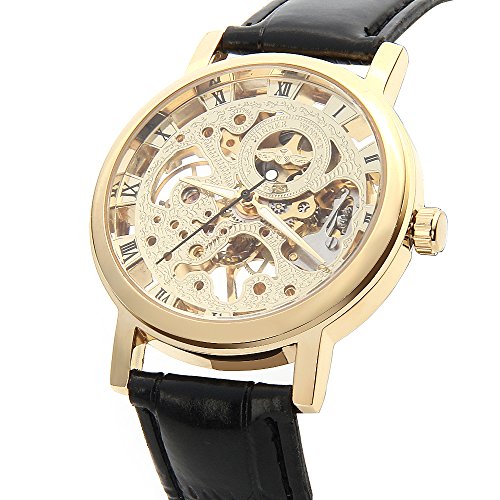 O.R.® (Old Rubin) Poli cas montre en or brillant creux montre mécanique automatique poignet montre de sport avec Black Bracelet en cuir véritable Cette puissance éventuellement s’agir de rechange montres votre choix