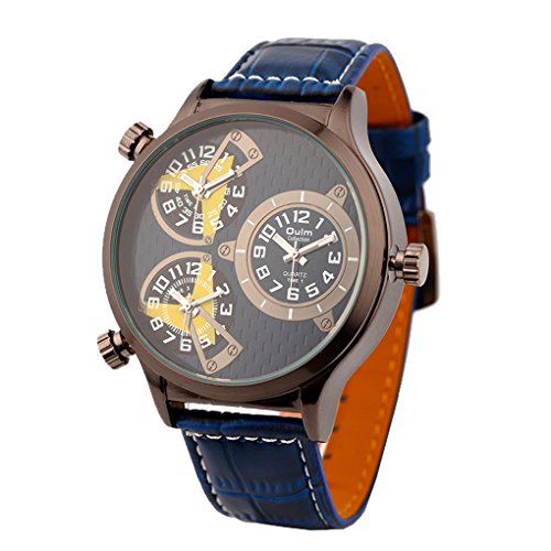 Oulm - Montre Homme Trois fuseaux horaires - Montre à quartz - Bracelet cuir Bleu - Cadran Bleu Ce mai éventuellement s’agir de rechange montres votre choix