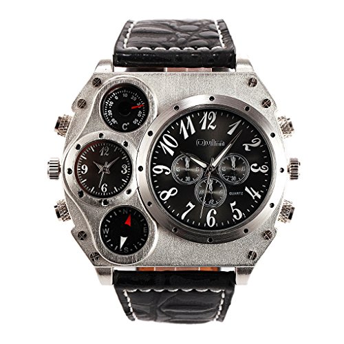 Oulm - Montre Hommes Dual montres de sport militaire avec Boussole et Thermomètre Décoration grand cadran - Noir Cela peut éventuellement s’agir de rechange montres votre choix