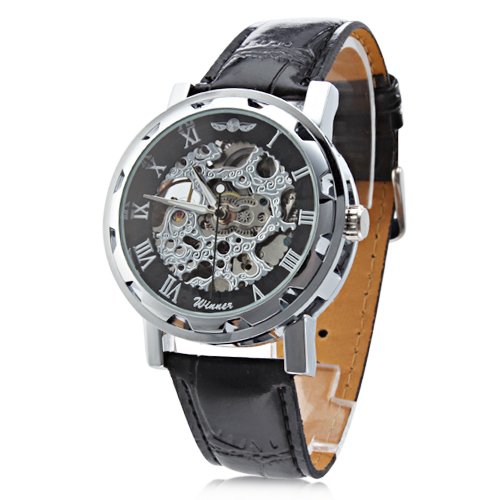 Winner (Meilleure vente 2013) Montre Bracelet Homme Inox Cadran Noir et Argent Steampunk ... AMPM24 Montre Mécanique a remontage Squelette Sportive Bracelet Cuir ...