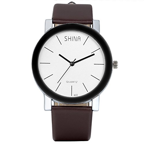 JewelryWe Accessoires Montre Bracelet Montre Homme d'Affaire Commercial Simple Quartz Cuir Alliage Fantaisie Couleur Brun Blanche Bracelet Longueur 24cm Avec Sac Cadeau Cela peut éventuellement s’agir de rechange montres votre choix