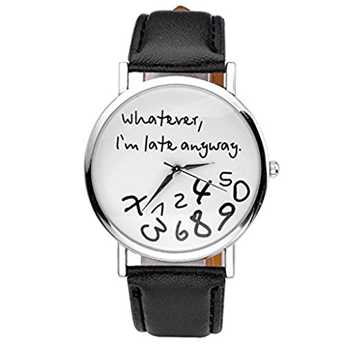 JSDDE -Nouveau Montre-bracelet analogique pour femmes hommes avec des écrits drôles "Whatever,I'm Late Anyway" (Blanc#+Noir#) Ce mai éventuellement s’agir de rechange montres votre choix
