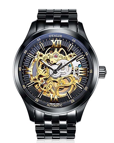Mode mécanique à vent de Hommes étanche Squelette Montre cadran noir bracelet en acier inoxydable Ce mai éventuellement s’agir de rechange montres votre choix