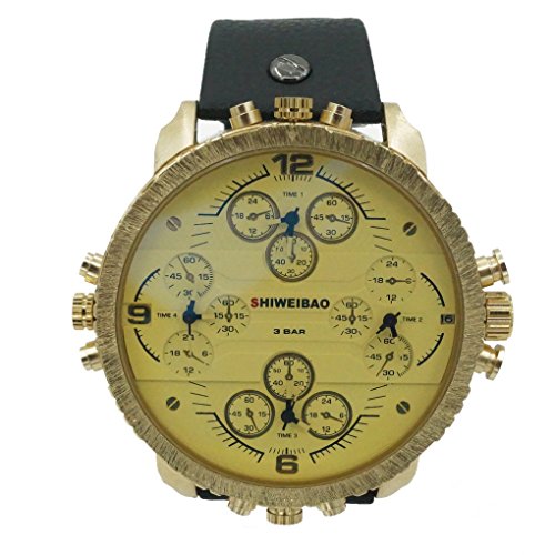 SHIWEIBAO - Homme Montre Quartz Montre mixte style tableau de bord automobile Bracelet en cuir Sports Armée Homme cadran or - Noir et jaune Ce mai éventuellement s’agir de rechange montres votre choix
