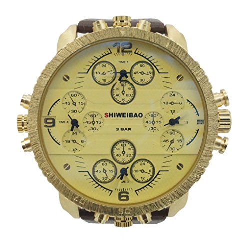 SHIWEIBAO - Homme Montre Quartz Montre mixte style tableau de bord automobile Bracelet en cuir Sports Armée Homme cadran or - Brun Cela peut éventuellement s’agir de rechange montres votre choix