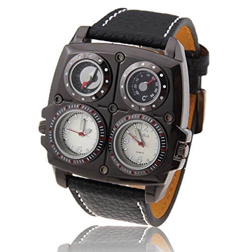 Vococal® Sport Double Fuseau Horaire Armée Militaire pour Hommes Grand Quartz Montre Multi Fonction Montre-Bracelet avec Boussole et Thermomètre Cela peut éventuellement s’agir de rechange montres votre choix