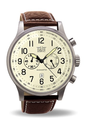 Annonces payantes - Montre homme Davis 0453-Montre Aviateur Homme Vintage 48mm-Cadran Beige-Chronographe Etanche 50M-Date-Bracelet Cuir Marron La montre Aviamatic ...