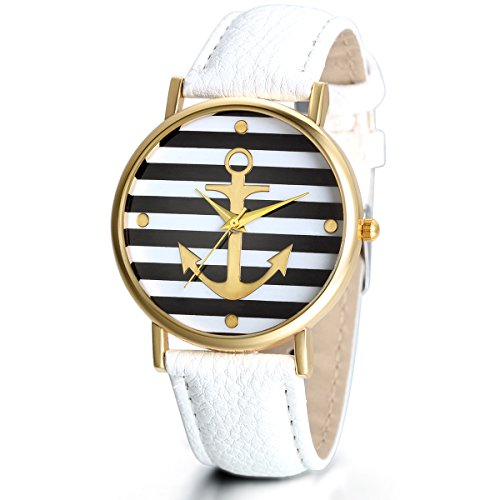 JewelryWe Accessoires Montre Bracelet Montre Homme Femme Ancre Stripe Montre Quartz Cuir Alliage Fantaisie Longueur 24cm Couleur Blanc Avec Sac Cadeau: Amazon.fr: Montres