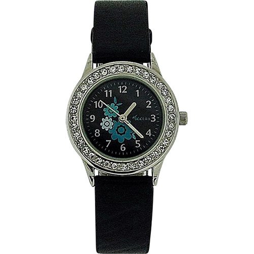 Montre Tikkers Noire pour Fille au Cadran Fleuri et Cristaux sur Lunette Ce mai éventuellement s’agir de rechange montres votre choix