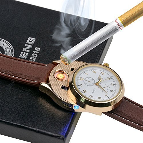 Ckeyin ® 2 en 1 - Montre à quartz et Briquet Coupe-vent, USB rechargeable, Sans flamme allume-cigare (Unisexe)Blanc Cette puissance éventuellement s’agir de rechange montres votre choix