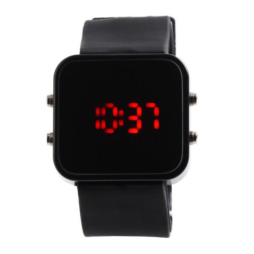 YESURPRISE Montre à LED Cadran Miroir Carré Bracelet en silicone Noir Cette puissance éventuellement s’agir de rechange montres votre choix