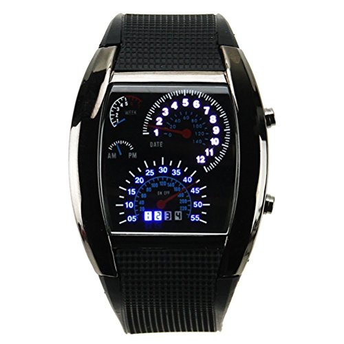 Pixnor HZ4641 Unisexe bleu binaire LED lumière matricielle voiture compteur cadran Aviation étanche montre-bracelet avec Date/semaine (Noir) Ce mai éventuellement s’agir de rechange montres votre choix
